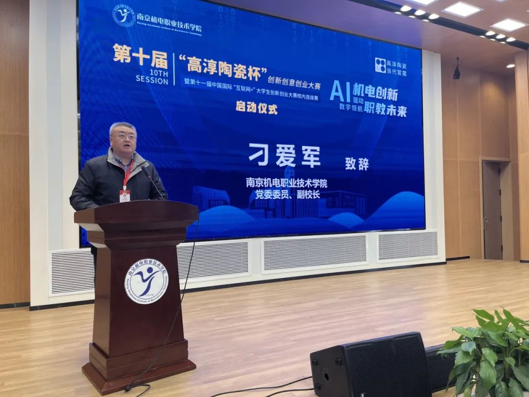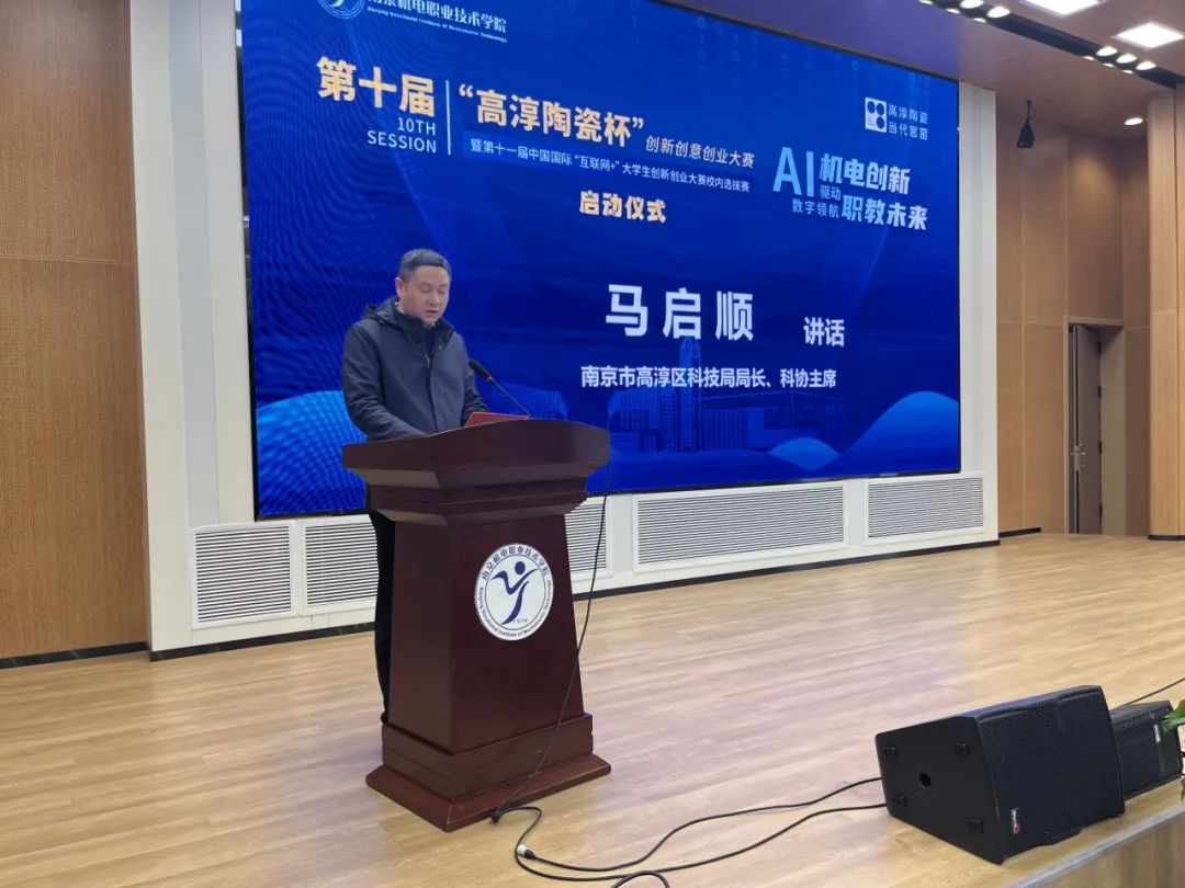 2025年3月18日,“AI驱动机电创新,数字领航职教未来”星空网页版登录入口第十届“高淳陶瓷杯”创新创意创业大赛暨第十一届中国国际“互联网+”大学生创新创业大赛校内选拔赛启动仪式在乐学楼102报告厅举行。南京市高淳区科技局局长、科协主席马启顺,南京高淳高新技术产业开发区管理办公室分管负责人倪友谊,南京高等职业教育创新创业园发展服务中心主任吴凯,江苏高淳陶瓷股份有限公司党委副书记、副总经理周玉明,学校党委委员、副校长刁爱军等领导出席启动仪式。300余名师生代表参加活动,共同见证大赛开幕。