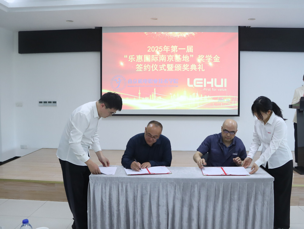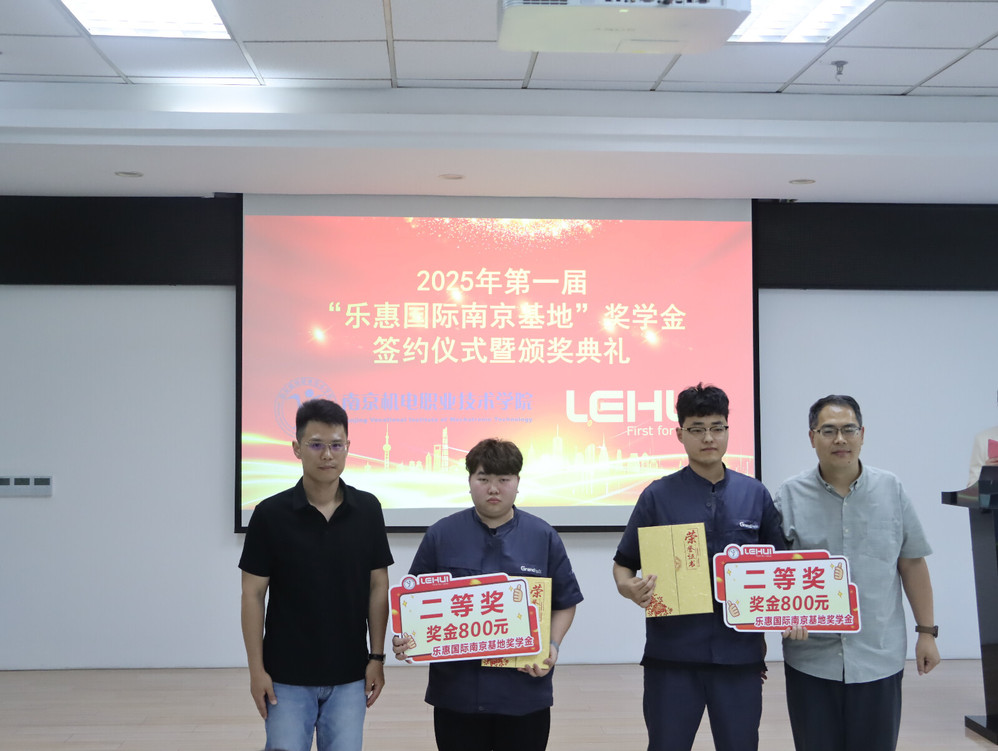 5月14日,第一届“乐惠国际南京基地”奖学金签约仪式暨颁奖典礼在乐惠国际南京基地培训厅举行。星空网页版登录入口党委副书记、副校长赵学洪,机械工程系主任毛奇,党支部书记胡枫,辅导员代表,教师代表,大三实习学生及23级学生代表,企业领导齐聚一堂,共同见证这一荣耀时刻。