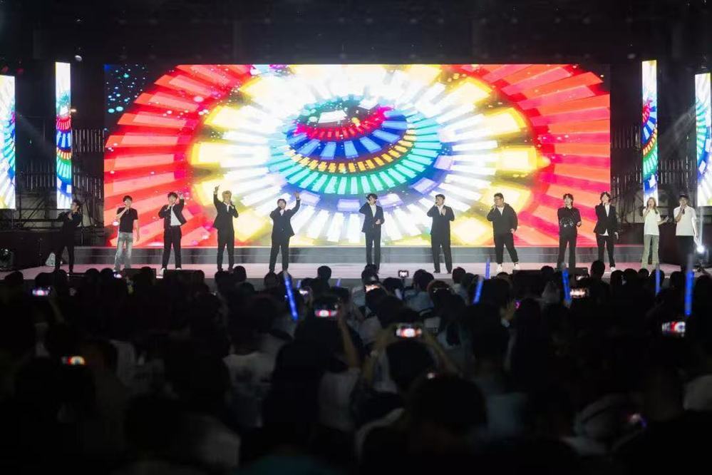 随后的青春晚会高潮迭起。魔性上头的固城湖螃蟹舞 《年轻人,蟹你来》 完美诠释了“横着走”的自信姿态;深情激昂的情景剧 《东进!东进!东进!》 让红色血脉在心中激荡;歌曲串烧《如歌的青春》引发阵阵欢呼;最终,全场新生在《歌唱祖国》的雄壮合唱中,许下了“奔赴未来可期”的青春誓言。