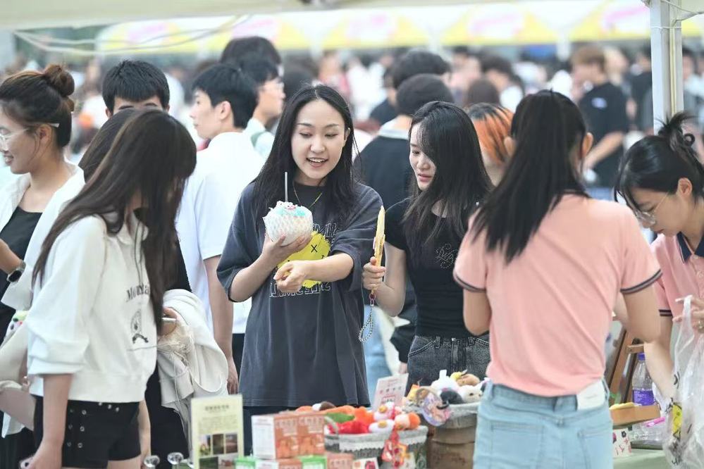 下午四点半,“感知高淳”游园会率先点燃了现场气氛。社团嘉年华活力四射,各高校社团使出浑身解数,展现了高职园蓬勃的青春力量。非遗匠心摊位,高淳羽毛扇、木雕、香包等非遗技艺让同学们流连忘返,引导学生们开启了一段独特的文化探索之旅。特色美食长廊人气爆棚,固城湖螃蟹等本土小吃香气四溢,新生们手持体验券,在味蕾上认识了高淳。科技互动区则酷炫十足,航模飞行、机器人展示等互动项目,让大家感受到了高淳“创新之城”的科技脉动。