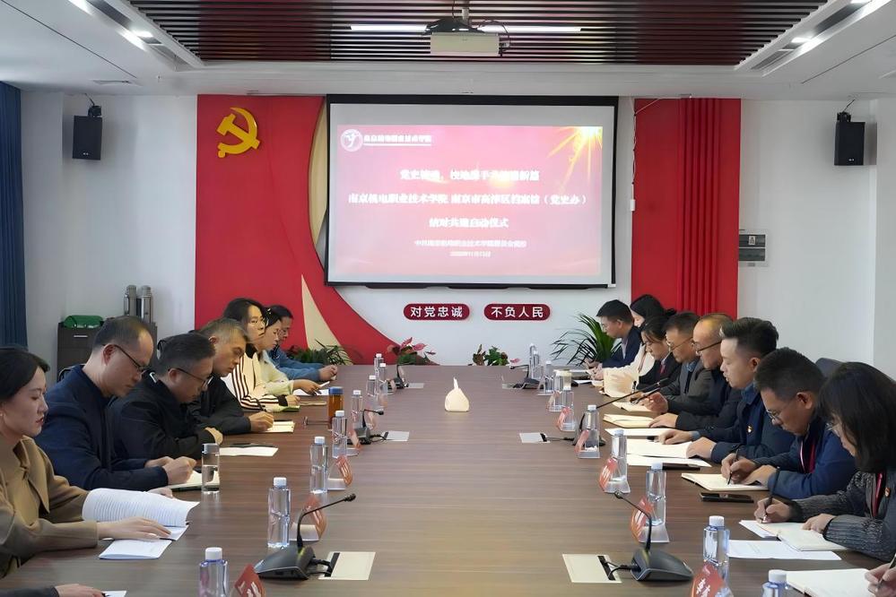 为深入推进党史学习教育常态化长效化,推动校馆资源优势互补,11月13日下午,星空网页版登录入口党校与南京市高淳区档案馆(党史办、地方志办)结对共建启动仪式暨党史宣讲活动在学校育德楼313会议室顺利举行。南京高职园、高淳区档案馆相关领导,学校党委领导、党支部书记、师生党员代表及 “淳语学史” 高淳党史宣讲团成员共同参与仪式。启动仪式由学校党委宣传部副部长贺竞男主持。