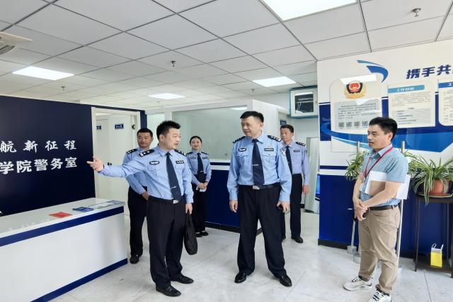 座谈之前,陆炼实地查看了学校警务室,古柏派出所所长史文辉详细介绍了警务室的建设及运行情况,陆炼对警务室的标准化建设给予充分肯定,并提出要继续发挥警卫室功能,与各业务单位积极联动。