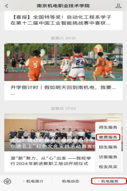 2.点击右下方“机电服务”下的“缴费服务”;