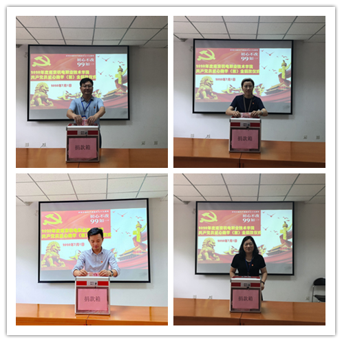 在中国共产党成立99周年之际,学院党委在弘德楼107会议室举行“星空网页版登录入口共产党员爱心助学(困)金捐款仪式”。党委工作部主任周启国、各系部书记及支委委员参加了捐款仪式。