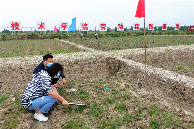 接下来,周庆礼依次为学校八个党支部的种植园授牌。机关一支部种植园名为“清风园”,意为教育工作廉洁清风,劳动实践田园清风。支部书记彭璐带领支委和一支部党员代表一起将种植园标牌插到田地里,并共同聆听技术指导老师荀财华为大家详细讲解黄瓜的种植要领和常见的虫害防护知识。听完荀老师的讲解后,在场的支部党员共同进行了第一次劳动实践,为黄瓜田松土除草。