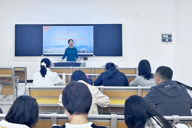 许青娟分别从习近平新时代中国特色社会主义思想的创立过程、回答的重大时代课题、主要内容、历史地位以及如何学等五个部分进行讲解,案例融入理论,深入浅出,老师们听得聚精会神。