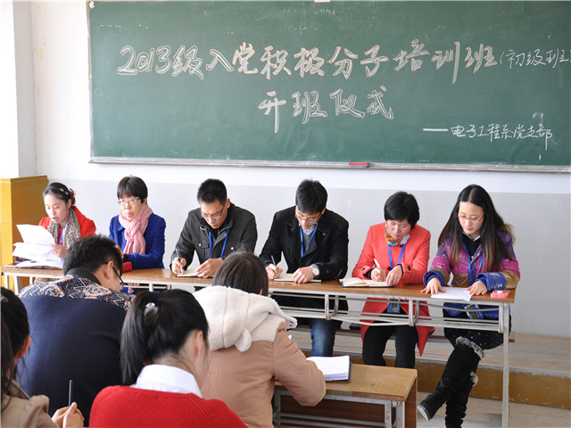 11月18日中午12:30,星空网页版登录入口电子工程系党支部在教学楼A208举行2013级入党积极分子初级班培训开班仪式。电子工程系党支部书记张宝中,宣传委员梁金平,组织委员林雪,党员惠珍、权海平、杨瑞以及31名积极分子学员参加了此次开班仪式。仪式由林雪老师主持。