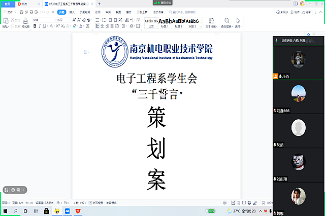 “三千誓言”特色活动,主要面向电子工程系全体学生征集一千张笑脸(自信阳光,非必要照片不遮挡)、一千句祝福(写下对党的祝福语,不少于20字)和一千句誓言(写下对党的誓言,不少于20字)。活动策划方案撰写、海报宣传、方案发布由学生会完成;学生会同时通过线上相关会议方式进行协调推进落实,各班级召开相关班会进行传达本次活动方案和相关要求,活动作品的提交与甄选由各班级和学生会共同进行完成!