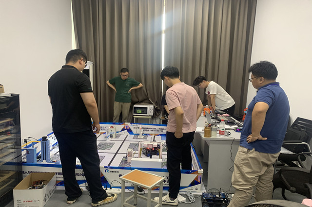 为了获得更好的训练效果,本团队邀请米迅企业的赵辉工程师对我系三名参赛学生进行了系统的培训。同时雷迅老师和赵工对学生的硬件装调等方面内容进行了交流、培训与指导。