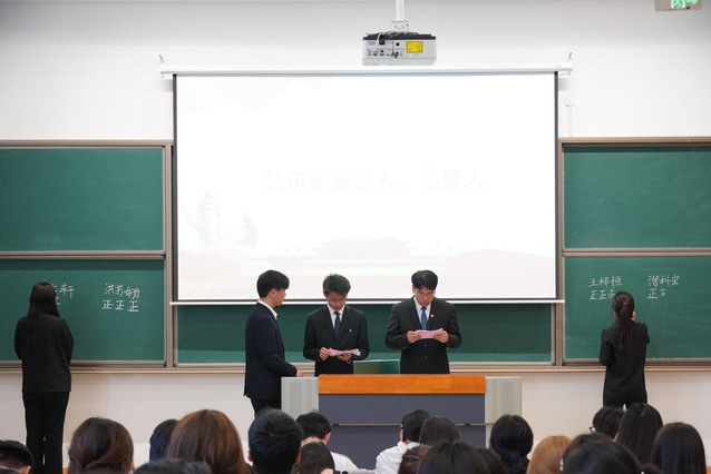 学生会副主席蒋梦涛宣读星空网页版登录入口电子工程系第五次学生代表大会选举办法,本次选举由各代表团在民主推荐基础上产生,采取无记名投票方式,实行差额选举,坚持公平、公正、公开的原则,流程规范。