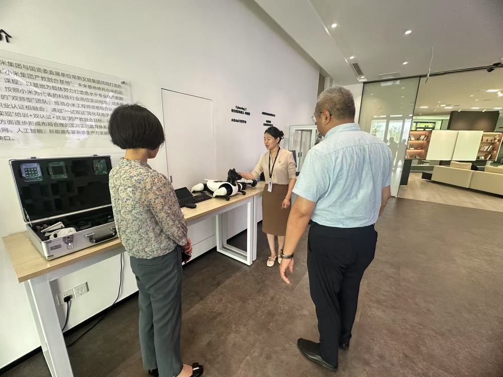 抵达基地后,调研团队首先参观了小米产教融合基地的互动体验中心。在这里,他们深入了解了小米在教育领域的创新产品,包括实验箱、机器狗、机器人,以及一系列智能家居产品。这些展品不仅展示了小米在人工智能和物联网(AIoT)领域的技术实力,也为在场人员呈现了未来智能生活与学习的全新场景。