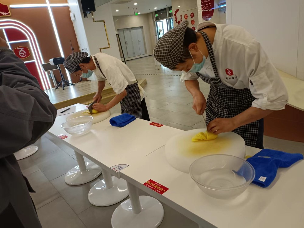 本次技能大比拼在学生餐厅一楼与二楼同时开展,共有包粽子、切土豆丝、打菜一勺准、清理餐桌、消毒水配兑与消杀5个项目。现场气氛热烈,员工情绪高涨,比赛内容将每天日常工作融入其中,员工的参赛体验感和操作实践水平得到了双向提升。