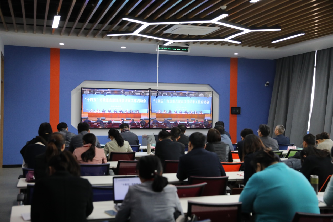 上午9:00,评审专家组全体人员、各申报项目负责人在我校博学楼409以视频直播的形式参加了市教育局主办的评审启动会,我校刁爱军副院长参加了主会场现场会议,汇报我校重点项目校内遴选情况。启动会结束后,评审工作立即开展。