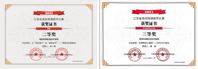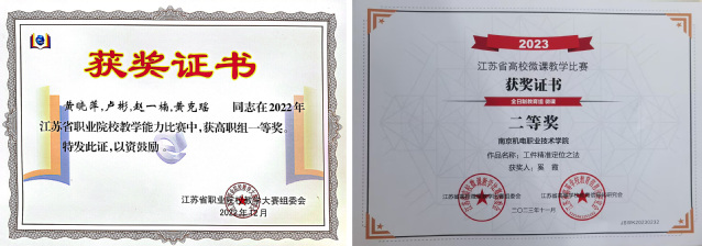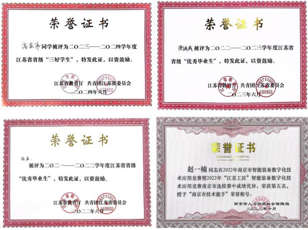 专业团队近三年获得江苏省职业院校教学能力比赛一等奖1项、三等奖1项;技能竞赛获得省级奖项10项;获得南京市有突出贡献技师、南京市技术能手、机电产业集团优秀共产党员、学院优秀教师、优秀共产党员、先进个人等荣誉16项。机械制造及自动化专业学生近三年积极参加各类竞赛,共获得国家级奖项12项,省级奖项60余项。机自专业学生共获得各项荣誉95项,其中省优秀毕业生2人,省三好1人,最美职校生1人。
