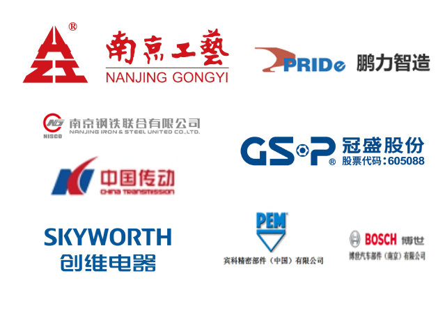 南京钢铁股份有限公司、江苏博睿光电股份有限公司、中船重工鹏力(南京)智能装备系统有限公司、南京工艺装备制造有限公司、南京市腾阳机械有限公司、创维电器股份有限公司、南京冠盛汽配有限公司、中国传动股份公司(南京高齿)、南京工艺装备制造有限公司、宾科精密部件(中国)、博世汽车(中国)、中石化南京工程有限公司、南京利德东方橡塑科技有限公司等。