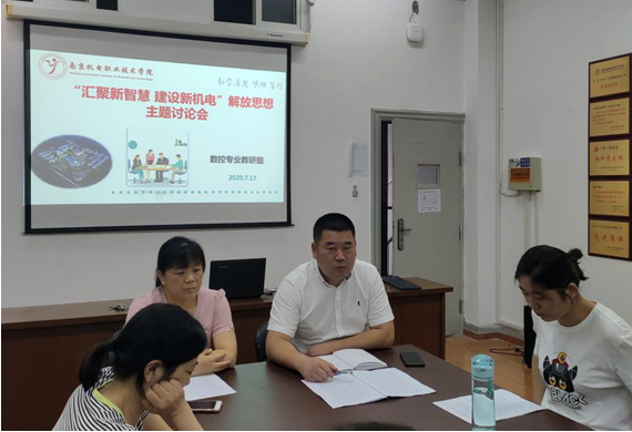 解放思想是我们党思想路线的本质要求,是发展中国特色社会主义事业的一大法宝,也是我院在适应新形势、战胜新挑战、推动大发展、实现新跨越过程中的重要法宝。机械系数控教研室于2020年7月17日上午及7月21日中午组织开展了“汇聚新智慧建设新机电”解放思想主题讨论活动。参与讨论人员有:系部书记李杰、数控教研室教师连碧华、林红艳、陆晨芳、封金徽、蔡明誉、张倩茹、吴彬、李俊、应爱玲、苏昌建。
