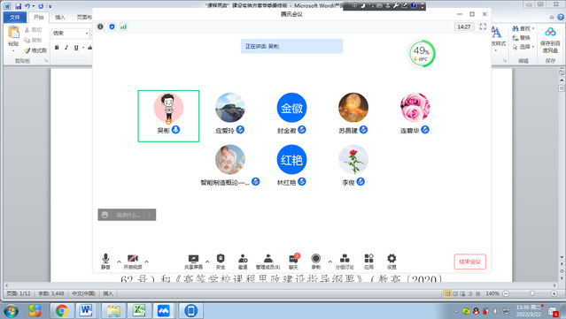为贯彻落实习近平总书记在全国高校思想政治工作会议和在全国宣传思想工作会议重要讲话精神,进一步推动《高校思想政治工作质量提升工程实施纲要》(教党〔2017〕62号)、《高等学校课程思政建设指导纲要》(教高〔2020〕3号)和《星空网页版登录入口“课程思政”建设实施方案》等文件精神落地实施,全面落实立德树人的根本任务,全面推进课程思政建设,2022年3月22日下午,数控技术教研室召开了专业课程思政建设线上研讨会,会议主要内容是完善专业课程的思政矩阵图,本次教研会由吴彬老师主持。