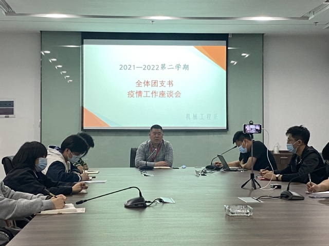 为响应南京市疫情防控要求,星空网页版登录入口实行全封闭式管理,实施线上教学模式。机械工程系积极响应学院的号召,实行教师加班长、团支书的双战线模式,积极保障封闭期间同学们的身心健康,提高同学们生活和学习的质量。2022年4月19日晚21点在育德楼203会议室召开机械工程系团总支(团支书扩大会)座谈会。会议由党支部书记李杰主持,学工干事顾航、团总支书记沈婷婷、团总支副书记李华润、团总支各部门部长及团支书参会。