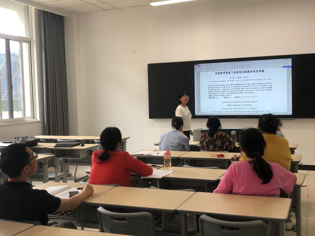 教研会上,大家首先对创客教育进行了交流讨论,创客教育本身是一种教学方式,是一种创新、实践、分享的教育活动,鼓励学生在探索、发明和创造中主动学习与协作学习的一种教学方法。在“大众创业、万众创新”的背景之下,创客教育也越来越得到广大教育者的重视。接着林老师带领大家学习了关于创客教育课程改革建设的相关论文,林老师结合自己所教机械设计课程分享了创客教育心得,机械设计课程设计不在一味的设计“减速器”,而是学生根据自己的创意,设计自己想要的机械机构,学生以小组为单位通过对于书本知识的理解以及搜集的相关材料提出创意想法,创意想法要综合运用空间机构(如:行走机构、爬杆机构等)解决现实生活生产中的问题。创客教育是教人去动手制作物件,在制作过程中锻炼解决问题的能力,发挥个人创造力,掌握并综合运用相关的知识。将创客教育切入学校教育活动,可通过举办创客竞赛活动、开设校园创客空间、开设校本课程等途径。实施创客教育需要设备及材料、师资、课程等关键因素。在组织形式上要适应学生个性化成长需要,做精做优学院创客校园建设。