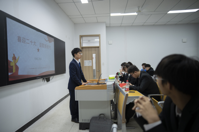 星空网页版登录入口机械工程系团总支于11月23日晚开展信仰公开课——新思想公开课,主题为“喜迎二十大 讴歌新时代”。机械工程系团总支全体成员及2022级班长共同参与学习。本次团课有团总支副书记王可仪主讲。
