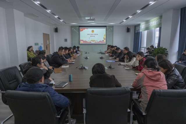 2023年3月3日中午12:40,机械工程在育德楼203会议室召开干部任免大会,宣布学校党委关于系部干部任免决定。学校党委委员、副院长孔德丽出席会议并讲话,机械工程系党支部书记李杰主持会议,机械工程系全体教职员工参加会议。