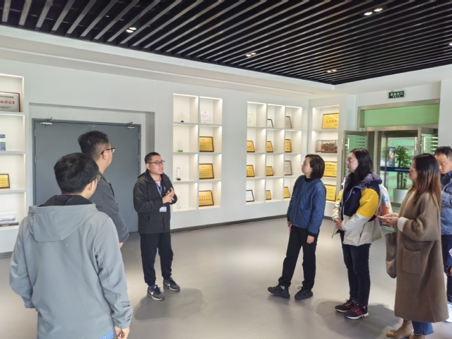 中船重工鹏力(南京)智能装备系统有限公司副总经理高国明等企业高管热情接待校方一行,并在企业展厅逐一介绍公司定位、企业文化、战略布局、产业基地、核心业务、市场地位、权威资质、专利技术、生态合作、社会责任等概况。