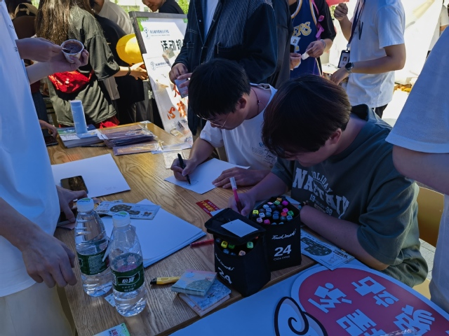 在机械工程系活动区域,共有这四个游戏可供同学们选择,分别是“撕掉焦虑,拒绝定义”、“答非所问”、“描绘你我”以及“写给未来的信”。同学们可以根据自己的需求,选择完成不同的游戏区域后获得积分,换取相应的物品,比如在“写给未来的信”环节,同学们在炽热的阳光下,写下自己炽热的文字,热烈地表达了自己对未来的憧憬,通过写信的方式宇未来的自己进行对话,提出期待,做出规划。确定目标提升自我效能感。现场气氛热烈活跃,摊位前人头攒动,各项活动都取得了良好的效果。