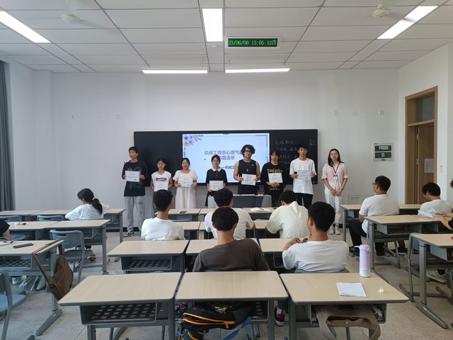 为了进一步落实机械工程系心理气象站的日常管理工作,加快润心行动的步伐,同时调动同学们参与到日常班级心理相关工作中来的积极性和主动性,为表彰在2022级心理委员培训中表现优异的同学,机械工程系心理气象站于2023年6月8日,在思学楼108开展换届选举大会暨结业仪式授予大会,机械工程系心理辅导员王潇然老师以及2022级全体心理委员出席了本次大会。