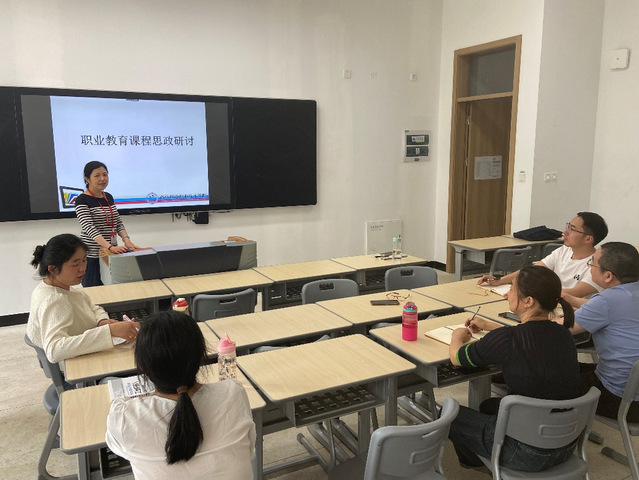 教研会上,应老师首先领学了《关于深化新时代学校思想政治理论课改革创新的若干意见》、教育部《高等学校课程思政建设指导纲要》(教高〔2020〕3号)和《星空网页版登录入口“课程思政”建设实施方案》3个文件,并结合自己的教学经历和经验,应老师从挖掘思想政治元素、思政内容融入教学内容、思政教学常态化三个方面阐述了职业教育的课程思政建设,与大家分享了在专业课程中融入思政的方式方法和心得体会.