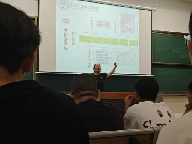 专业介绍会上,桑老师首先对23级新生加入机械制造及自动化专业的大家庭表示热烈欢迎,随后分别从专业定位、专业前景、专业的就业方向、专业所学课程、业余社团、各类竞赛及学历提升等方面进行了全面的介绍,同学们认真聆听学习。