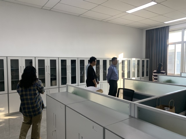 孔德丽亲自走访每一间教职工办公室,亲切地询问老师们对新的办公场所是否满意,搬迁有无遇到困难等等,真切地关心我系每一位教职工。各位教师脸上都洋溢着灿烂的笑容,对新的办公场所很满意。这里不仅有崭新的桌椅、明亮的灯具、整齐的书柜,而且还配有活动室、档案室和会议室等办公场所,极大的改善了我系教职员工的办公条件。