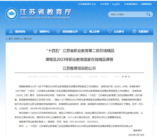 近日,江苏省教育厅公示了“十四五”江苏省职业教育第二批在线精品课程及2023年职业教育国家在线精品课程江苏推荐项目名单,机械工程系黄晓萍教师团队建设课程的《机械图样的绘制与识读》课程被成功立项为“十四五”江苏省职业教育第二批在线精品课程。本次推荐名单共确定了269门课程(职业本科3门、高职214门、中职52门)为“十四五”江苏省职业教育第二批在线精品课程。