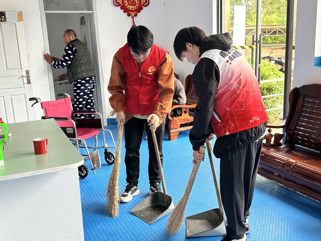 一进入敬老院,志愿者们就迅速行动起来。他们细致地擦拭每一个房间的桌椅、窗台,不放过任何一个角落,让老人们的居住环境焕然一新。在庭院里,志愿者们拿起扫帚和拖把,认真地清扫地面,为老人们创造了一个整洁舒适的室外空间。