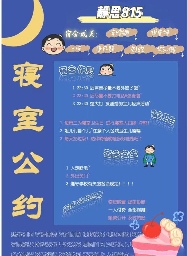 本次宿舍公约征集活动丰富了同学们的课余生活,促进了室友之间的团结协作,同时也增进了宿舍成员之间的相互交流。