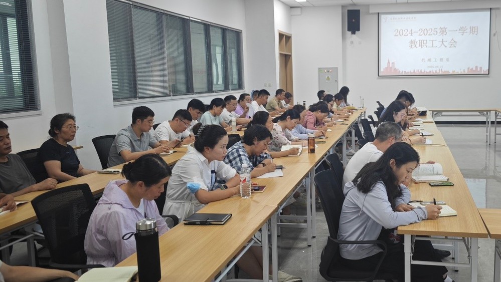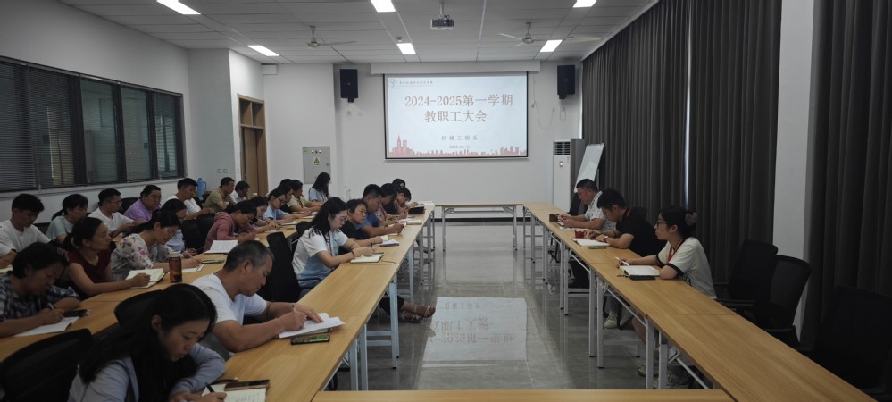 为更好地统筹和安排新学期各项工作,精心谋划开学新篇章。2024年8月31日下午,在笃行楼401召开新学期第一次全体教工会议,会议由系党支部副书记李杰主持,机械工程系主任毛奇、副主任黄晓萍和全体教职工参加会议。