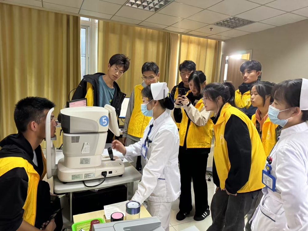 随后,同学们亲身体验了各种高精密检查仪器。通过使用眼压检测仪、视力测试仪等先进设备,同学们更加直观地感受到了现代医疗技术的神奇与精准。在体验过程中,医护人员耐心地为同学们介绍仪器的使用方法和检测目的,让同学们在实践中增长了知识。