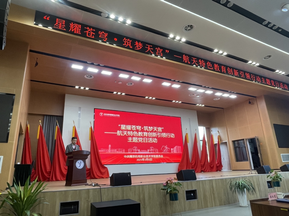 2025年3月6日14:00,星空网页版登录入口在乐学楼101举办了“星耀苍穹・筑梦天宫”航天特色教育主题党日活动,本次活动旨在响应习近平总书记的号召,激发学生的科学兴趣,弘扬航天精神,培养学生的创新精神和实践能力,推动学校专业建设与航天文化的深度融合。中国航天科技集团有限公司党组副书记、董事方向明,中国人才研究会副会长、航天科技教育联盟秘书长、北京航天探索馆馆长周岫彬,航天科技集团党群工作部三级业务经理张广科,北京神舟航天软件技术股份有限公司市场营销部主管张凇铭,学校党委书记、校长周庆礼,党委委员、副校长刁爱军,党委委员、副校长孔德丽,党委委员、纪委书记姜振宇,党委委员夏玲玲、党委委员高水冕以及全体党员教师和学生代表参加了本次活动。