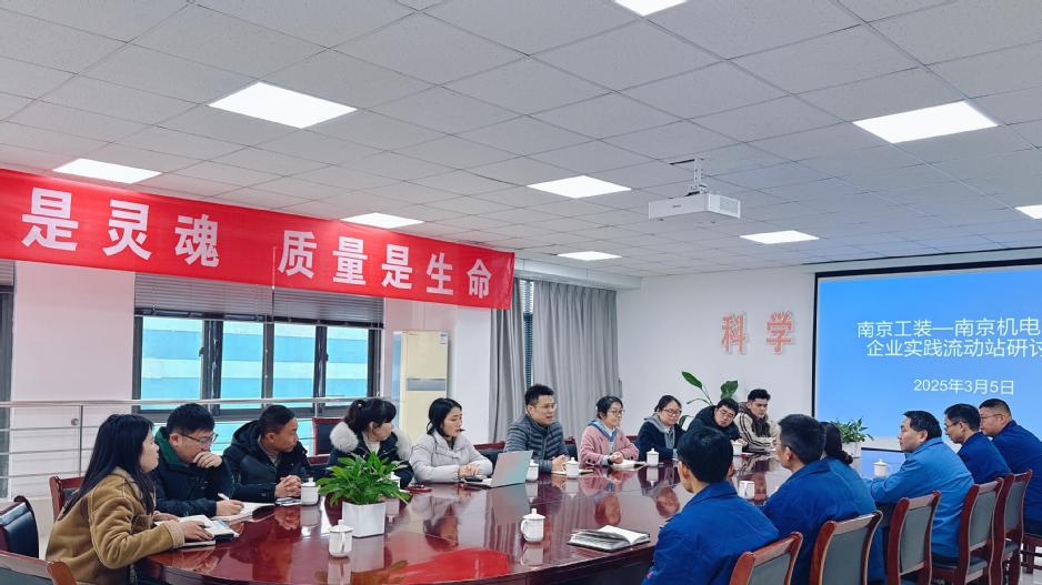 机械设计与制造专业老师赴“南京机电—工艺装备教师企业实践流动站”开展交流学习为进一步深化校企合作,强化高素质“双师型”教师队伍建设,推进教师深入企业开展实践锻炼,提升教师实践能力和创新能力,促进学校提高人才培养水平和企业科技创新能力。2025年3月5日,机械工程系主任毛奇带领“南京机电-工艺装备教师企业实践流动站”团队及2025年教学比赛团队前往南京工艺装备制造有限公司开展交流学习。南京工艺装备制造有限公司纪委书记刘丽丽、首席主任工程师王守珏、技术党支部,支部书记李小春、设备部部长彭朝胜、品管部部长魏胜利、综合管理部主管陶冶参加此次交流会。