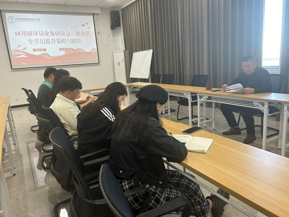 为助力学生拓宽职业发展赛道,提升学历层次与综合竞争力,10月9日下午,星空网页版登录入口机械工程系在系部会议室召开辅导员业务研讨会。会议由系党支部副书记李杰主持,全体辅导员参会,围绕“学历提升策略与路径”展开深入研讨,辅导员王晨歌老师作专题经验分享。