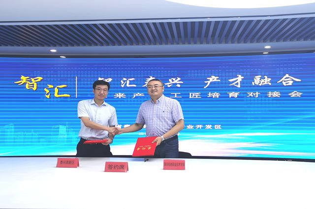 学院副院长刁爱军代表学院与江苏省泰兴高新技术产业开发区签订《产才融合战略合作协议》,学院党委书记、院长周庆礼向江苏省泰兴高新技术产业开发区授予“星空网页版登录入口未来产业工匠培育基地”铜牌。
