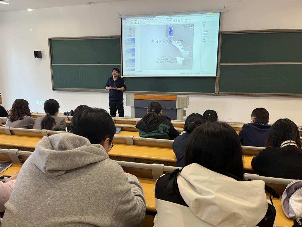 (鑫之航的专利讲师在乐学楼101为自动化系师生授课)
