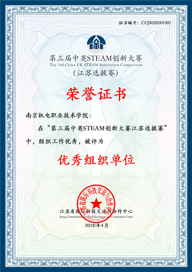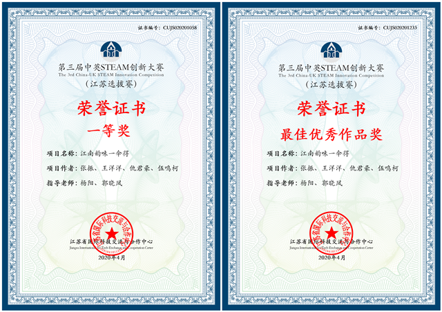 受疫情影响,第三届中英STEAM创新大赛江苏选拔赛终评工作于线上圆满落幕。本届中英STEAM创新大赛以“人类命运共同体”为核心价值观,以“用科技创新的方式,讲好中国故事”为主题倡导参赛者推进国际传播能力建设,讲好中国故事、传播好中国声音,向世界展现真实、立体、全面的中国,提高国家文化软实力和中华文化影响力。来自100多所学校的300多个项目参加了本次大赛,我院创客们凭借他们的创客项目在本项赛事中获得一等奖3项、二等奖5项等优异成绩。