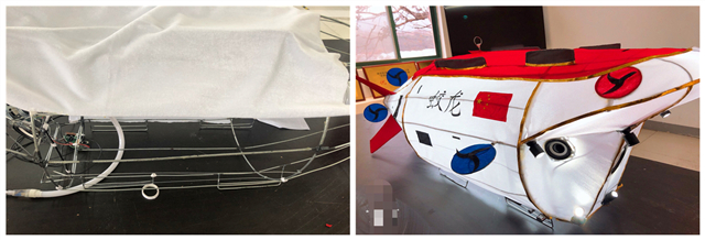 秦淮花灯是我国省级非物质文化遗产项目,而蛟龙号也是我国自主研发且具备强大深潜能力的深海科研设备。谢守阳等同学组成的创客团队紧紧围绕“用科技创新讲中国故事”的大赛主题,利用学院蓝岛创客空间现有资源对花灯进行智能化改造,制作“花灯(蛟龙号)”,并为这项中国传统工艺加入了声光电的效果。