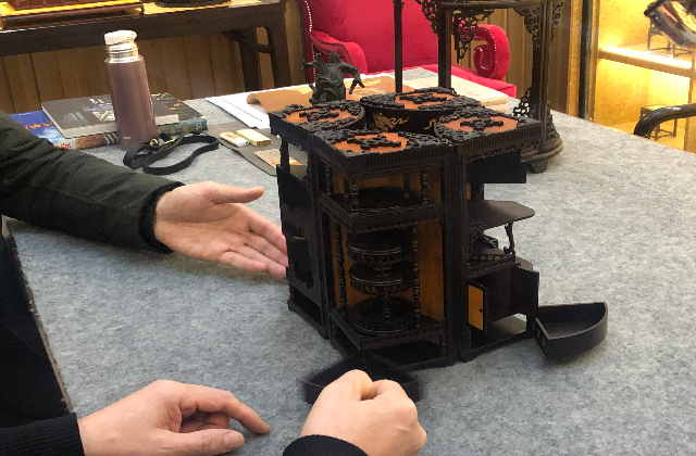 南京市玄武中等专业学校的姜主任带我们参观了学校的观朴鲁班工坊,介绍了学校对于观朴鲁班工坊的课程安排、课程内容以及未来的课程发展方向。南京市玄武中等专业学校的观朴鲁班工坊由南京观朴艺术博物馆协助进行设计建设,南京观朴艺术博物馆的雷馆长为非物质文化遗产——苏作小木家具制作技艺传承人。雷馆长对观朴鲁班工坊的工位设计、工具摆放点和木工工具进行了详细介绍。接着,我校蓝岛创客空间王国珍主任及成员随雷馆长前往凤凰吾在书舍参观了雷馆长的明式家具,雷馆长介绍了榫卯结构、扇形官帽椅等,感受到了明式家具的古朴雅致。交流中,雷馆长表达了对一些传统技艺失传的遗憾,希望让非遗传承走向社会、走进学校,走出自我的小家,走向民族的大家。王国珍主任向雷馆长介绍了学校蓝岛创客空间对木工工坊的建设想法,希望通过木工工坊,传承非遗文化,以导入课程为初期目标,培养学生的工匠精神为最终目标,让传统的技艺传承变得更加扎实。