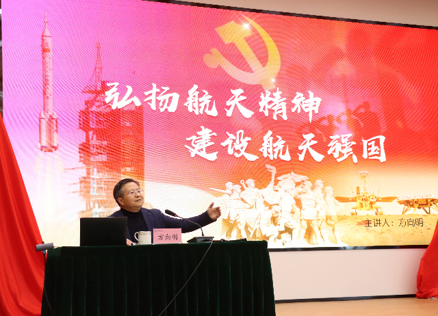 他首先带领大家回顾了人类航天事业的起源、发展历程以及关键里程碑事件,展现了航天事业从无到有、从小到大的壮丽图景。接着,他详细介绍了新时代中国航天事业取得的辉煌成就,如载人航天、月球探测、北斗系统及天宫空间站等,彰显了我国航天事业的蓬勃发展和国际地位的提升。他强调航天事业的高风险、高投入、国际化合作和技术创新驱动特点,及其对国家安全与国际地位的重要性。通过讲述航天先驱与当代杰出人物的故事,方向明书记弘扬了勇于探索、挑战极限、无私奉献和团队合作的航天精神。他鼓励大家在新时代背景下继续发扬航天精神,推动航天事业高质量发展,并激励师生勇于追梦、担当责任,为航天事业贡献力量。
