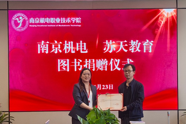 随后,苏天教育科技股份有限公司董事长成东中分享了苏天教育多年来在专转本教育领域的探索与坚持,表达了对同学们的殷切期望。接着成东中代表苏天教育进行图书捐赠,学校图书馆馆长张翼作为校方代表接收捐赠图书。此次捐赠图书涉及马克思主义理论、高等数学、大学语文及机械、电子等六大类专业课共计220册。