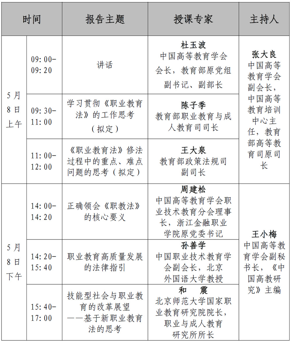 为深入贯彻落实全国职业教育大会精神,做好新职业教育法普法工作,全面准确解读新职业教育法,持续推进依法治教、依法办学,扎实推动职业教育高质量发展,中国高等教育学会决定举办“学习贯彻新职业教育法宣讲大会”,现组织全体教职工进行学习,有关事项通知如下: