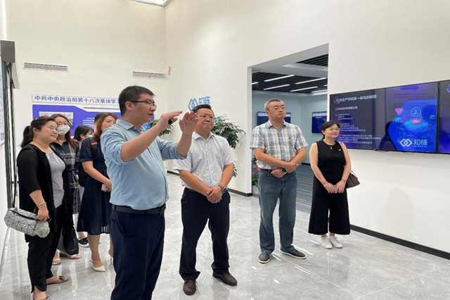 首先,清科链谷副总裁贺宁带领周院长一行参观了鼓楼区区块链产业先导区——南京清科链谷科技有限公司,贺总从区块链发展历史、基础设施、产教融合、应用方向等方面详细介绍了区块链生态融合圈。并结合清科链谷创作协作中心的发展规划,描述了区块链服务体系的创新模式。