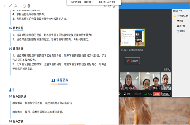 11月 30日,数学教研室全体老师展开了本周教研活动,会议由马小雪老师主持。本次教研活动的主题是学习并探讨《高等数学》课程思政课教学设计。