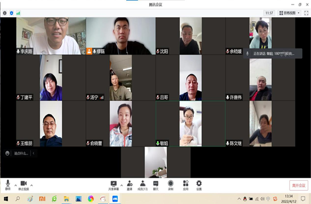 2022年4月12日13:30-15:00,体育教研室在腾讯会议平台开展线上教研活动。会议由教研室主任李庆路担任主持人,教研室12位老师参加会议。